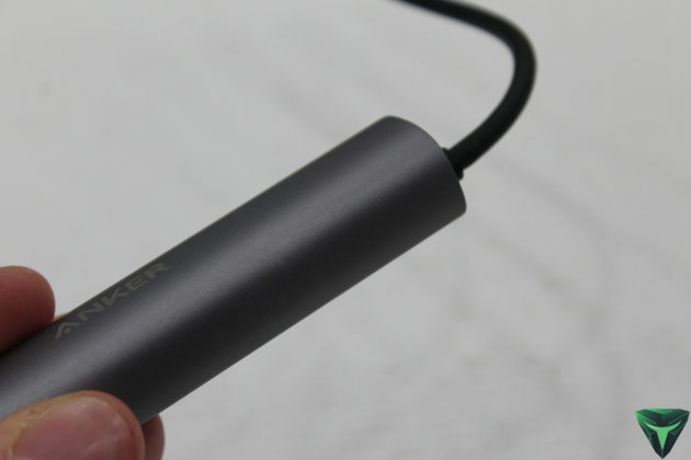 Il cavo lungo 11,7 cm presenta una struttura molto flessibile rivestita da un particolare materiale gommoso. Anche il connettore USB Tipo-C propone un corpo misto fra alluminio e plastica. Insomma, l’Anker Hub USB-C è un prodotto facilmente trasportabile grazie alla sua compattezza. Sulla parte frontale troviamo il logo Anker mentre sul retro alcune informazioni e le certificazioni ottenute dal prodotto.